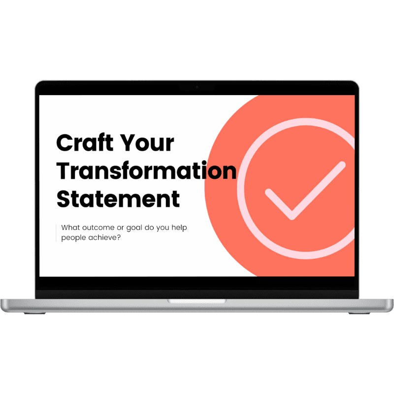 Craft a transformation statement that sells the outcome. People don't buy your product — they buy the outcome or problem it solves. Learn how to clearly articulate the result your audience is really buying. This gives you a powerful anchor for all your messaging and a built-in gut check for future ideas, content, and offers, so everything stays aligned with the transformation you deliver.