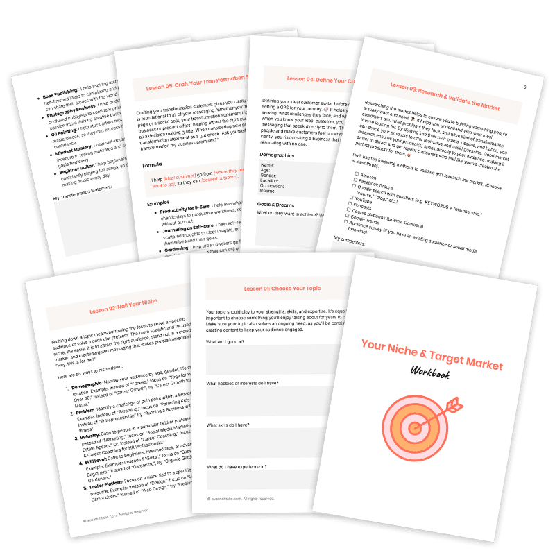 A step-by-step framework to choose your topic, narrow your niche, validate demand, and clarify the transformation you offer—so your messaging attracts the right people and makes selling feel natural.